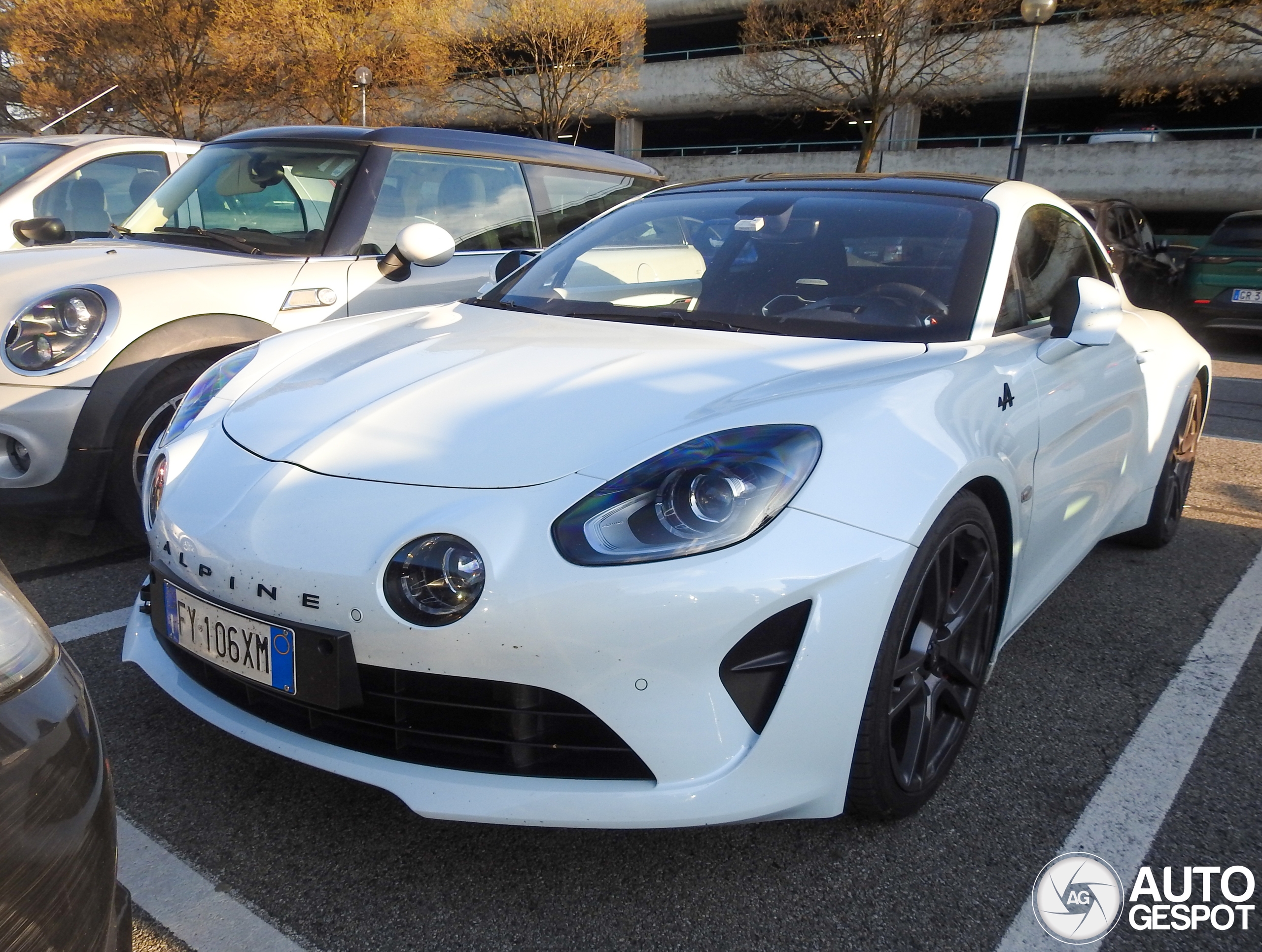 March 2025 After almost one month I'm back posting on AG with this very nice Alpine, the first one on Italian plates I'm able to spot, which was parked at Le Gru mall in Grugliasco, with just a couple cars between it and my Renault Clio. I rarely spot cars parked between other cars as usually owners of expensive cars park them with free sides to avoid possible damages, but the owner of this Alpine seems to trust other people a lot haha. This car has been posted on AG by my friend Mike (mikecars22) in Modena two years ago, on April 2023.